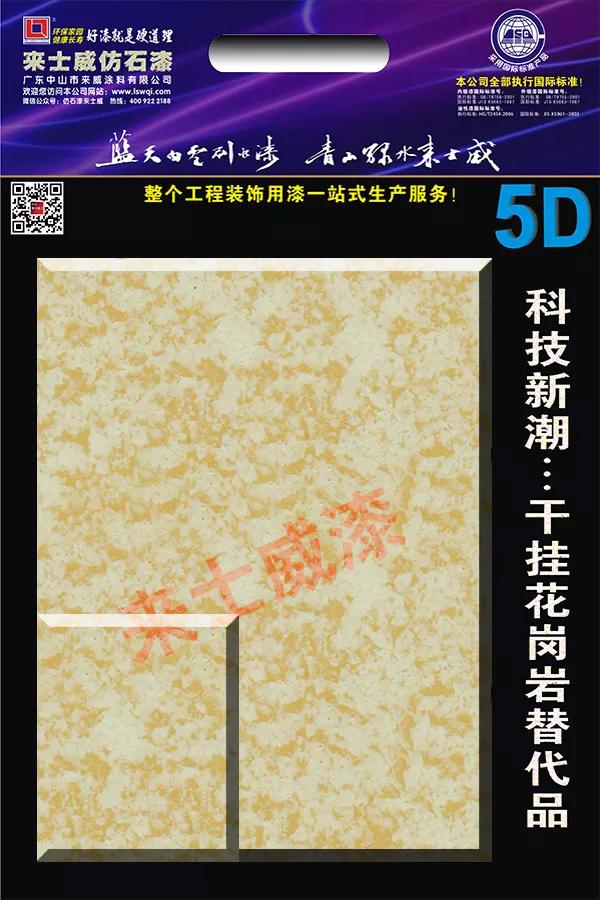 來士威水包水大理石漆是一種仿大理石材,以高級純丙烯酸硅樹脂乳液為主要原材料,優(yōu)質(zhì)無機(jī)顏料、高性能助劑及其它優(yōu)質(zhì)原材料與先進(jìn)的加工工藝相融合,參照大理石的光澤度、吸水率開發(fā),仿制各種形狀顏色花紋的并具有高仿真效果的新型水溶性藝術(shù)質(zhì)感涂料,并呈現(xiàn)立體感強(qiáng),光澤優(yōu)雅,外觀質(zhì)感好的浮雕狀涂層。它具有耐酸堿、抗紫外線、耐水洗、抗日曬雨淋、耐污染、耐磨、粘接強(qiáng)等特點(diǎn)。
