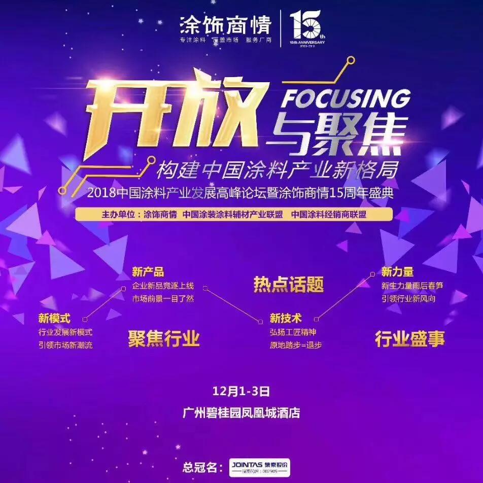 “2018中國(廣州)涂料產(chǎn)業(yè)發(fā)展高峰論壇暨涂飾商情15周年盛典” 將于12月1日-3日在廣州碧桂園鳳凰城酒店舉辦,來士威作為戰(zhàn)略合作單位受邀參加2018中國(廣州)涂料產(chǎn)業(yè)發(fā)展高峰論壇暨涂飾商情15周年盛典,共同探討中國涂料發(fā)展產(chǎn)業(yè)新格局。