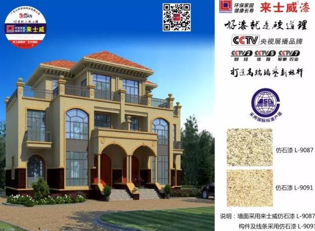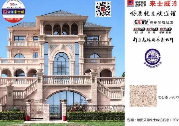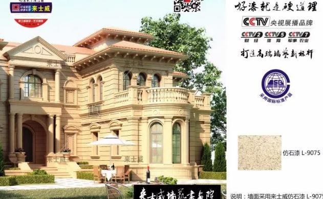 其實,現(xiàn)如今鄉(xiāng)鎮(zhèn)別墅和高樓大廈的外墻,也都是跟這個品牌有關——來士威仿石漆!