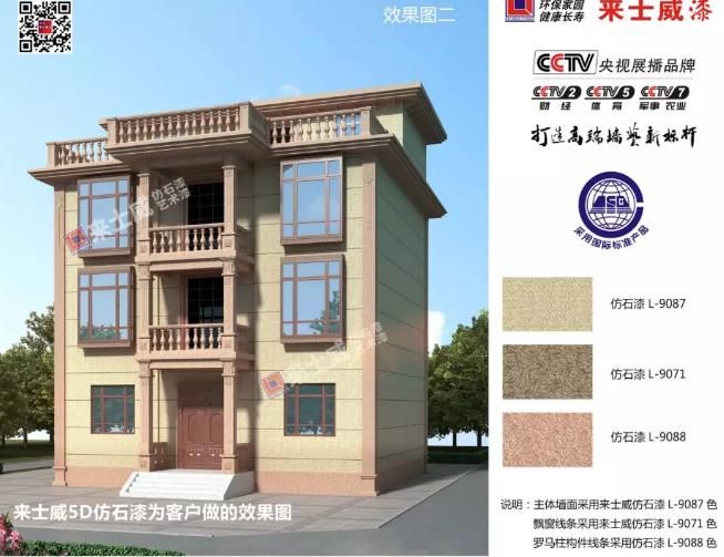 特別是來士威仿石漆功能成分:有效吸附甲醛、苯等有害氣體,避免了傳統(tǒng)仿石漆存在的健康環(huán)保問題;是一款受現(xiàn)代人們歡迎,真正的綠色環(huán)保涂裝材料。來士威別墅水包砂仿石漆墻體藝術(shù)漆之所以在市場如此受歡迎,也是因為性價比好、質(zhì)量高,價格優(yōu)等特點;來士威仿石大系列不僅環(huán)保健康,而且不受外界自然影響,壽命長高達(dá)20年之上,防水防火防腐蝕性特俱佳,在整個施工過程中,清爽干凈、不易蹦砂掉粉,沒有污染或垃圾產(chǎn)生,真正環(huán)保,真正健康!