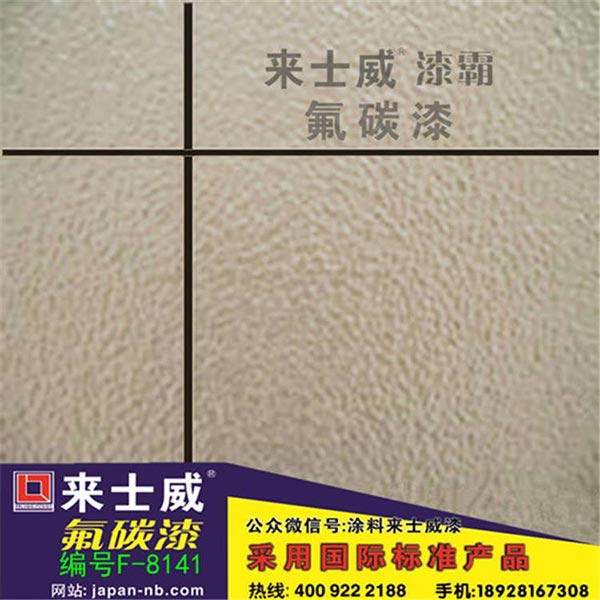 氟碳面漆是選用優(yōu)良氟碳樹脂為基料,添加助劑及各種金屬效果顏料精制而成的雙組份溶劑型外墻漆,具有良好的耐候性、抗污性和抗腐蝕性,金屬效果顏料的隨向異色性賦予漆膜很高的裝飾性和華麗的質(zhì)感。