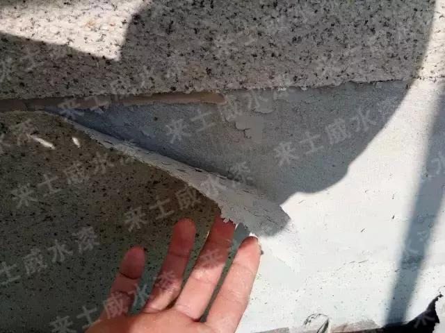 但是很多真石漆施工往往都不能達(dá)到實(shí)際標(biāo)準(zhǔn),導(dǎo)致真石漆脫落、泛白、泛黃等現(xiàn)象,三分涂料七分施工,如下圖所示,真石漆能成片大面積脫落的,可能并不是漆的問題,相反,能成膜連成一片的真石漆反而是乳液含量比較高,漆的質(zhì)量比較好的。