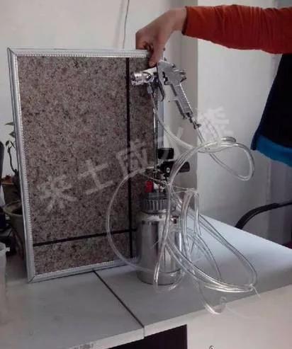 2、采用噴涂法,力求主材層均勻,厚度一致,調(diào)節(jié)氣壓強(qiáng)弱達(dá)到控制點(diǎn)型大小,注意罐內(nèi)氣壓,盡量控制在0.05MPa。