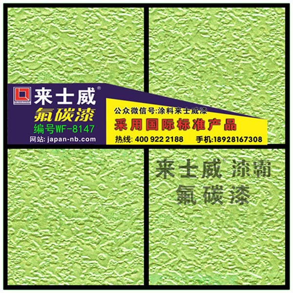 氟碳面漆是選用優(yōu)良氟碳樹脂為基料,添加助劑及各種金屬效果顏料精制而成的雙組份溶劑型外墻漆,具有良好的耐候性、抗污性和抗腐蝕性,金屬效果顏料的隨向異色性賦予漆膜很高的裝飾性和華麗的質感。