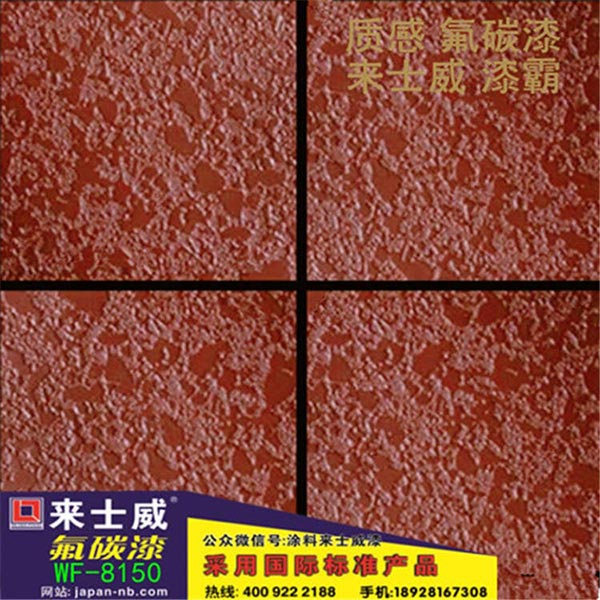 氟碳面漆是選用優(yōu)良氟碳樹脂為基料,添加助劑及各種金屬效果顏料精制而成的雙組份溶劑型外墻漆,具有良好的耐候性、抗污性和抗腐蝕性,金屬效果顏料的隨向異色性賦予漆膜很高的裝飾性和華麗的質(zhì)感。